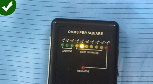 易合通產(chǎn)品采用5MM條紋面料導(dǎo)電綢防靜電值能達106-109次方,持久性防靜電,耐清洗次數(shù):100次左右,兼有阻燃、防油性能